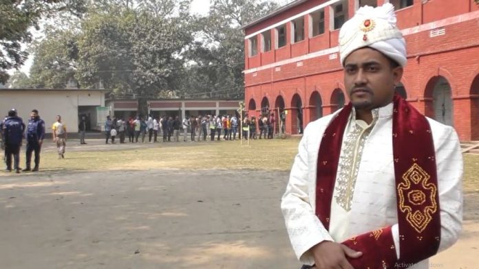 বিয়ের সাজে ভোট দিতে আসা এই বর দিনের আলোচনায় পরিণত হন এবং স্থানীয়দের প্রশংসায় ভাসেন।