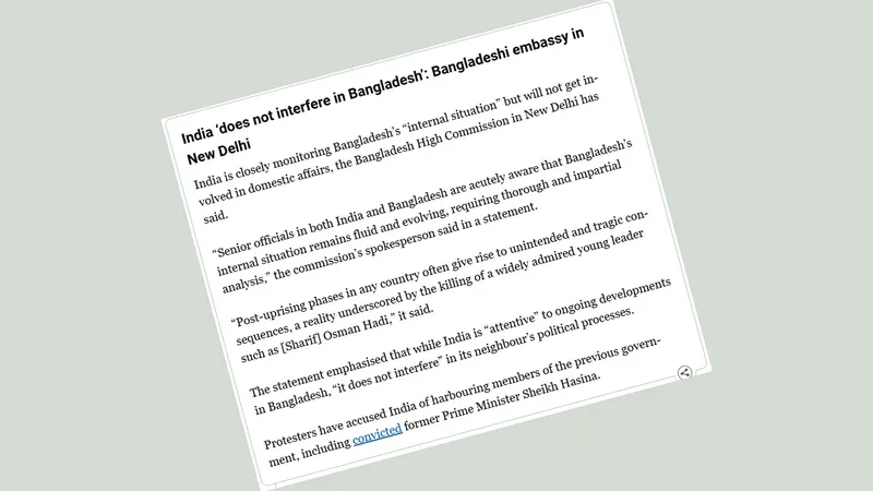বিতর্ক ও অভিযোগের প্রেক্ষাপট উল্লেখ্য যে, সাম্প্রতিক ছাত্র-জনতার আন্দোলনের প্রেক্ষাপটে বিক্ষোভকারীদের পক্ষ থেকে ভারতের বিরুদ্ধে কিছু অভিযোগ তোলা হয়েছে। বিশেষ করে, সাবেক প্রধানমন্ত্রী শেখ হাসিনাসহ বিগত সরকারের সদস্যদের ভারতে আশ্রয় দেওয়া নিয়ে জনমনে ক্ষোভ সৃষ্টি হয়েছে। এমন এক উত্তপ্ত পরিস্থিতির মধ্যেই দিল্লি তাদের এই আনুষ্ঠানিক অবস্থান পরিষ্কার করল।