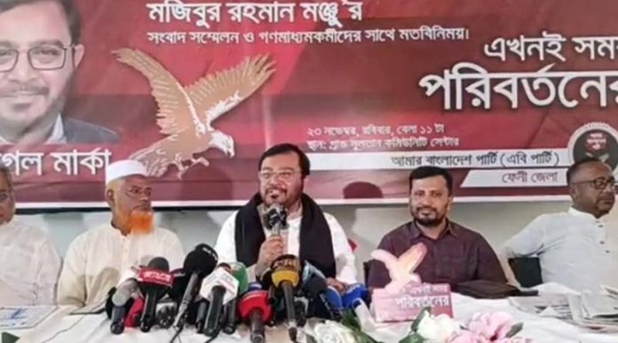 হাসিনা দেশে ফিরে আদালতে আত্মসমর্পণ করলে আওয়ামী লীগের ওপর আরোপিত নিষেধাজ্ঞা প্রত্যাহার করা যেতে পারে—এমন মন্তব্য করেছেন এবি পার্টির চেয়ারম্যান মজিবুর রহমান মঞ্জু।